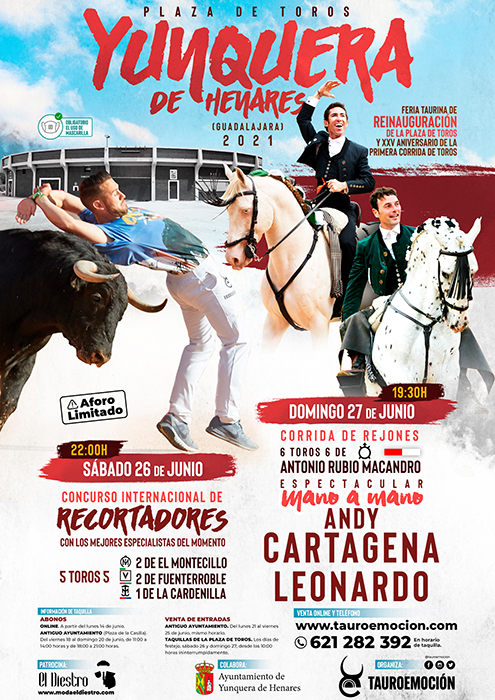 - 27 de junio: gran corrida de rejones mano a mano Andy Cartagena y Leonardo con toros de Antonio Rubio Macandro.
