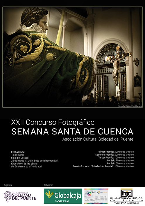 La Asociación Cultural “Soledad del Puente”, de la V. H. de Nuestra Señora de la Soledad (del Puente) ha abierto la convocatoria para sus emblemáticos concursos fotográfico y literario, dos de las actividades más esperadas por los nazarenos de Cuenca. Tras la suspensión de 2020 a causa de la pandemia y de la particular edición de 2021, también marcada por el desarrollo de la situación sanitaria y la ausencia de desfiles procesionales, la Asociación espera recuperar este año la normalidad.