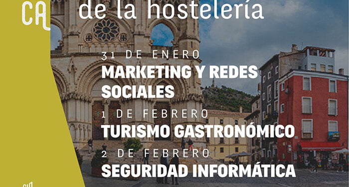 Acercar el uso de las herramientas digitales a los profesionales conquenses del sector de la hostelería para que puedan posicionar su oferta, con una atención y mentoría individualizada, es el objetivo del programa de formación que se llevará a cabo del 31 de enero al 2 de febrero, en un horario de 18,30 a 20,30 horas, dentro del calendario de actividades del Ayuntamiento de Cuenca con motivo de la Capital Española de la Gastronomía y bajo el paraguas del Plan de Sostenibilidad Turística.