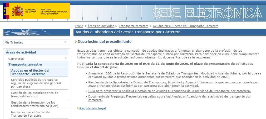 Las solicitudes deberán presentarse en la sede electrónica del Ministerio de Transportes, Movilidad y Agenda urbana en el siguiente enlace https://sede.fomento.gob.es/SEDE_ELECTRONICA/LANG_CASTELLANO/OFICINAS_SECTORIALES/TTE_CTRA/AYUDAS/AYUDAS_ABANDONO/