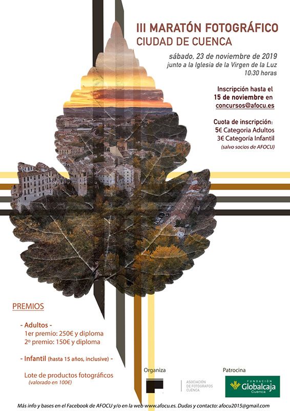 AFOCU celebra el III  Maratón Fotográfico Ciudad de CuencaEl próximo día 23 de Noviembre, tendrá lugar el III Maratón Fotográfico Ciudad de Cuenca, organizado por la Asociación de Fotógrafos de Cuenca, gracias al patrocinio de la Fundación Globalcaja.