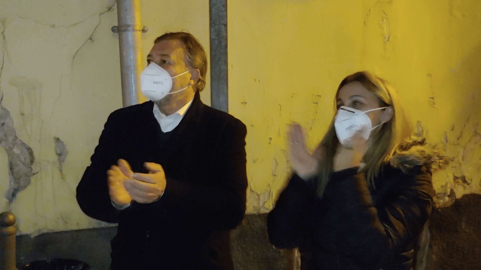 Carmen Torres, médico del barrio Alfono VIII, estaba junto a Gerardo. “Son pacientes míos, de cupo, y les agradezco que hayan han tenido este detalle conmigo”, dice Carmen. Una persona que, para los residentes, viene a ser como un ángel caído del cielo. “De eso nada. Siempre que he hecho falta he estado aquí. Todos hemos colaborado, todos” me dice mientras aclara que, aunque está de vacaciones, el barrio va bien. Lo dice junto a Isaac Gómez, de UCAPI, Unidad de Continuidad Asistencial de Atención Primaria y Medicina Interna, del Hospital Virgen de la Luz de Cuenca, que tiene como objetivo ofrecer una atención integral a los pacientes crónicos y pluripatológicos del Área de Salud evitando ingresos hospitalarios, complicaciones y visitas innecesarias a los servicios de Urgencias. “Sí, se trata de una unidad que, con la Covid, se ha convertido en una sección socio sanitaria de apoyo a residencias y, sobre todo, con rastreos y la vacunación que, como se sabe, llegará pronto aunque no sea el final del problema. Es el principio del final, es el punto de partida para terminar” decía junto a Mari Luz Fernández, delegada de la Consejería de Sanidad que también había acudido a la cita, a esta demostración de cariño y gratitud preparada desde Aframas en una, noche ya, en la que la farola del alumbrado público, bajo el balcón central, impedía con su luz apreciar la iluminación de los balcones y que, las cámaras fotográficas hicieran técnicamente bien lo que tenían que hacer.
