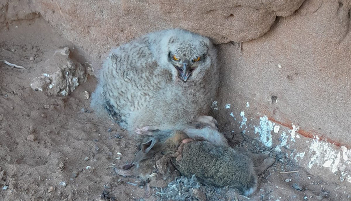 Miembros de la UNIDA se personan en el lugar para rescatar dos pollos en buenas condiciones de salud. En el nido puede verse con claridad como la madre había capturado un conejo.