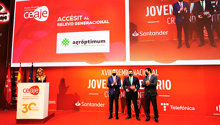 Así, durante esta gala se otorgaron un Premio Nacional Joven Empresario y siete accésit, uno de los cuales, el que se corresponde al Relevo Generacional, fue recibido por Ángel Minaya, como gerente de Agróptimum.