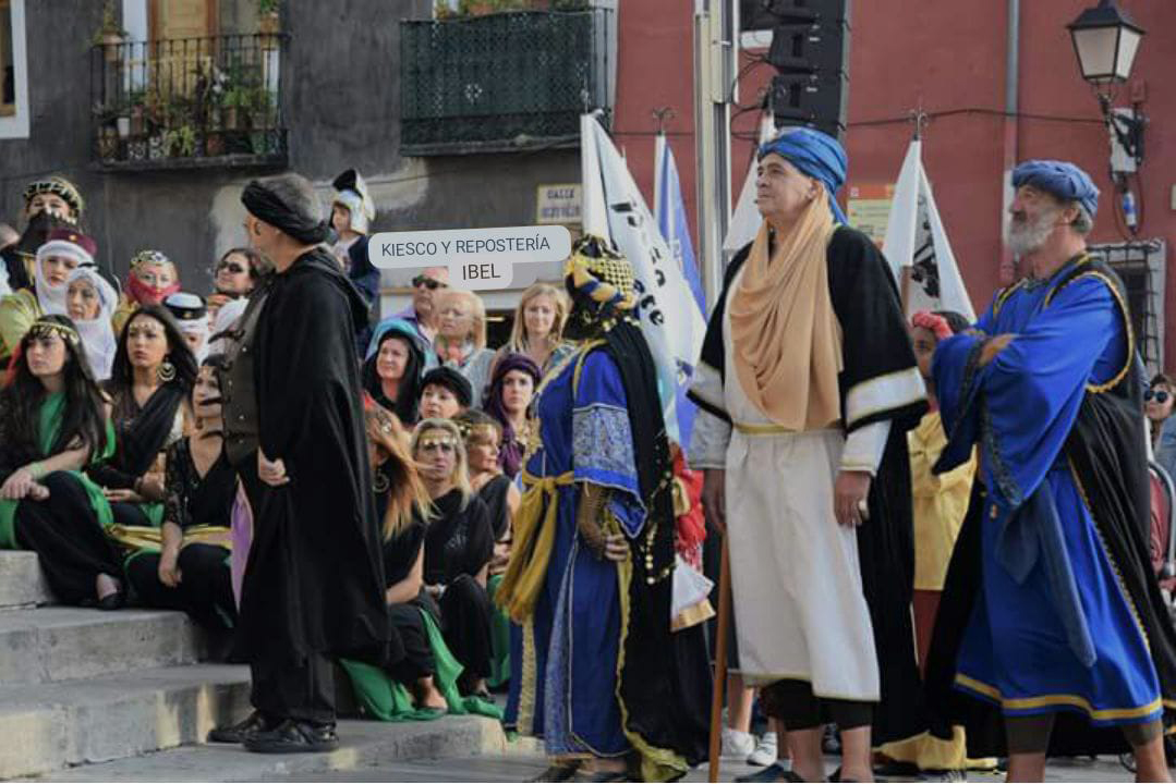 La escenificación teatral que se lleva a cabo el sábado por la tarde cuenta con más de ciento veinte personajes intervinientes, individual y colectivamente, que lo hacen altruista y generosamente para la ciudad. Poner el escena el Texto elaborado por el cronista oficial Miguel Romero, y bajo la dirección de Germán Olivares y Rafa Núñez es una tarea compleja que supone cierta dificultad por los tiempos de ensayo, por la diversidad de papeles teatrales, muestras musicales, elementos externos como caballos y burros, escenario al aire libre (organización y corte de tráfico), mercado, espacios de uso, útiles o elementos complementarios, servicios municipales, etc. La facilidad que el Ayuntamiento en la difícil logística, la Catedral y su cabildo permitiendo el acceso a su interior, las empresas colaboradoras, las entidades colaboradoras, los establecimientos hosteleros y la vecindad ofrece, permite conseguir el éxito en cada edición, no si con ello demostrar que hay aspectos que mejorar año tras año.