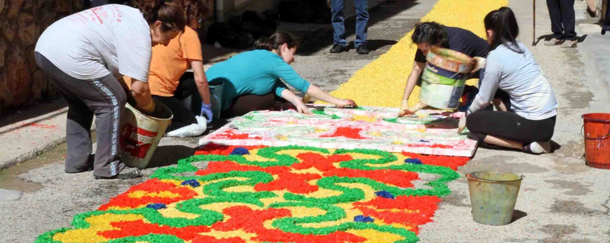 Almonacid de Zorita alfombra 2 kms de calles en la Fiesta del Corpus Christi