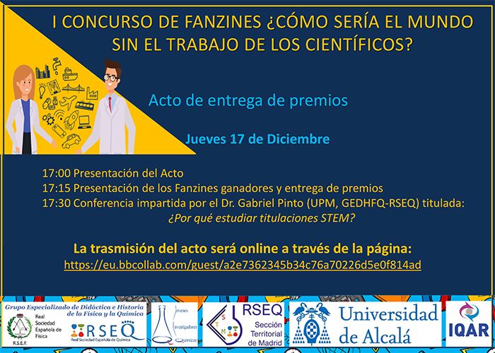 Ya se conocen los ganadores del I Concurso de Fanzines ¿Cómo sería el mundo sin el trabajo de los científicos?, organizado por el Decanato de la Facultad de Ciencias, Sección Química de la Universidad de Alcalá con un doble objetivo: concienciar sobre la contribución de la Ciencia a la Sociedad y promover el conocimiento científico a través de una actividad creativa.