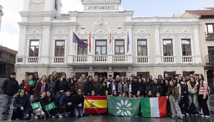 La alcaldesa recibía similar invitación por parte de los alumnos italianos que le han obsequiado con unas guías turísticas de su ciudad, antes de que todo el grupo posara, en la fachada del Ayuntamiento, con la bandera de España e Italia, y la de Lomellina, región en la que se ubica su ciudad de origen.