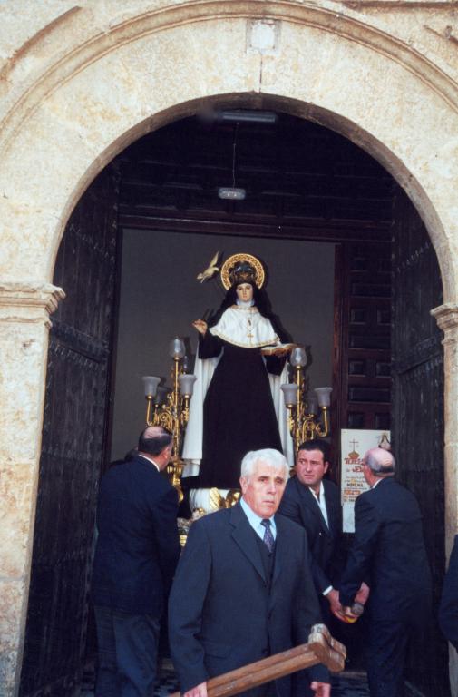 Entre los asistentes, converso con Gratiniano, un amigo jareño quien me habla del significado que para el pueblo tiene esta fiesta, conmemoración de vecindad con Santa Teresa: «…fue una monja especial, Enrique, con la que aún hoy podemos hablar en el silencio del templo carmelita; ella nos entiende como mujer que es del pueblo, con una línea muy directa a nuestro corazón. Una mujer de gran personalidad, que con nuestros antepasados estuvo, de carne y hueso…, eso nos hace tenerla un cariño diferente»