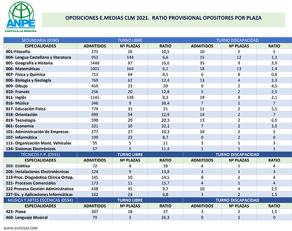 El 19 de junio se prevé que den comienzo las Oposiciones de Enseñanzas Medias en Castilla-La Mancha. Un proceso al que se han inscrito 12.090 aspirantes para todas las especialidades convocadas tanto por el turno libre como por el turno de discapacidad.