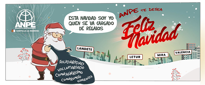 ANPE desea ¡feliz Navidad y un próspero año nuevo! a toda la comunidad educativa y especialmente a los docentes y las docentes que trabajan día a día por la calidad de la enseñanza pública en Castilla-La Mancha.