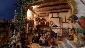 Una vez ideado, planificado, hay muchísimas técnicas a la hora de montar un belén atendiendo al número de escenas que queremos representar. Escenas y orografía. Superficie, el tapiz vegetal sobre el que vamos a desarrollar la idea y jugar con las alturas. “Sí, es lo que decía. Es que, por la falta de espacio, te obligas a tirar para arriba como ocurrió con la cuenca medieval. Se trata de tomar altura y ganar perspectiva que te de esa sensación de volúmenes, de tamaños, que te den aspecto de realidad y credibilidad. Y de las muchas formas que hay para hacer belenes, pues nosotros nos inclinamos más por el lado clásico. Por la orografía que estamos acostumbrados a ver porque es la que nos rodea y, por eso, abundan piedras, musgos, relieves intentando imitar lo kárstico…” añade Antonio que, a la izquierda de su belén, ha dejado un trocito de la Balsa de Valdemoro por el que se despeña un chorro de agua que miran las cabras montesas en lo alto. “Pues mira, este año, no quería utilizar mucho el tema del agua porque da muchos problemas. Hay fugas, hay filtraciones, hay dificultades por capilaridades con el musgo que va chupando y te echa el agua fuera…a mis hijos les encanta lo del agua y, de ahí, ese guiño a la Balsa que hice hace algunos años. Una chorrera que reparé el año pasado y que, este año, funciona muy bien”.