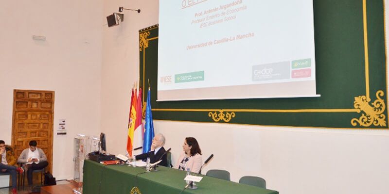 La Cátedra de Innovación y Desarrollo Cooperativo y Empresarial “Fundación Caja Rural Castilla-La Mancha-UCLM”, dentro de las iniciativas que promueve para acercar a los estudiantes contenidos y materias de relevancia, ha organizado una conferencia protagonizada por el profesor Antonio Argandoña que ha llevado por título “Economía internacional: ¿Un mundo feliz o el fin del mundo?”.