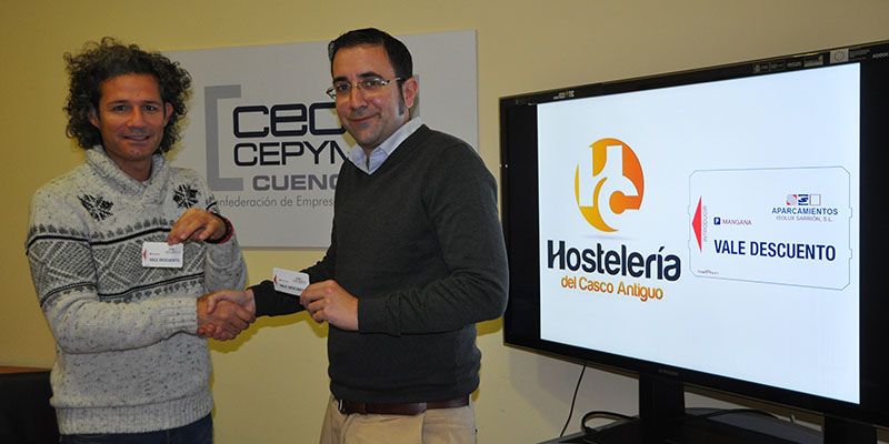 convenio de HC Casco Antiguo y el parking de ManganaEste convenio ha sido firmado por el secretario de la asociación de hostelería de la zona histórica de Cuenca, Diego López,  y el gerente del parking de Mangana, Carlos del Saz, que han mostrado su satisfacción por llegar a un acuerdo que llevan varios meses negociando.