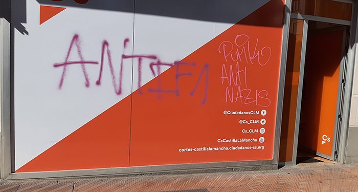 Ciudadanos Cuenca denuncia los actos de vandalismo que ha sufrido la oficina de Cs Castilla -La Mancha en la capital conquense.