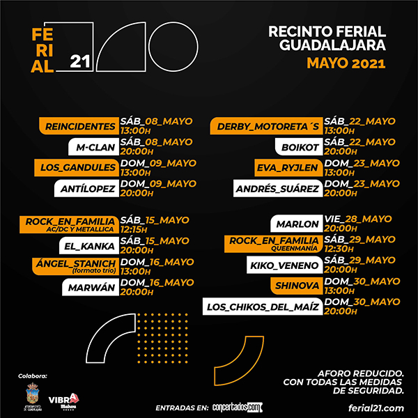 El resto de conciertos previstos para este fin de semana, se celebrarán en las siguientes nuevas fechas: