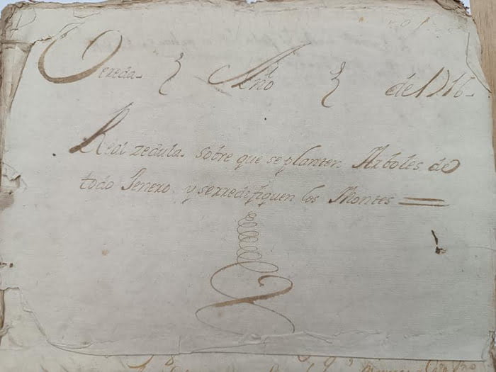 El documento del mes de diciembre que presentamos desde el Archivo Histórico de Cuenca es una Real cédula de Felipe V, del año 1716, en la que se dan indicaciones muy precisas, relativas a que se plantasen árboles de todo género y se reedifiquen los montes. Este documento se envió a las justicias de las ciudades, villas y lugares por medio de vereda. El origen de este documento real se encuentra en los notorios daños que experimentan mis vasallos en la falta de leña que ay en mis dominios, lo que a ocasionado allarse despobladas muchas partes de España, conservándose otras con ynmensa fatiga y travajo.