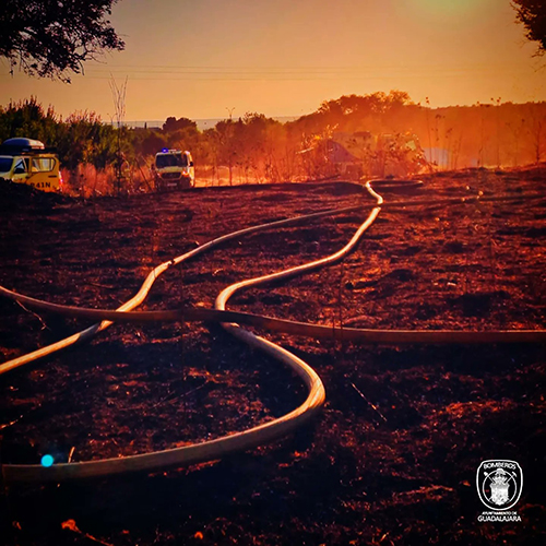 El aviso se recibió a las 20:22 horas del pasado lunes y se desplazaron dos dotaciones de los bomberos del Ayuntamiento de Guadalajara que extinguieron el incendio junto a 14 personas y cuatro medios del Plan Infocam.