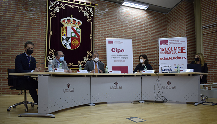 El Foro de Empleo de la Universidad de Castilla-La Mancha, UCLM3M, cumple quince ediciones con el objetivo de establecer vínculos entre el mundo empresarial y los estudiantes y egresados, y favorecer así la incorporación de éstos al mercado laboral. El Foro, que se celebrará en línea hasta el próximo jueves, 29 de abril, comenzaba su programa de actividades tras un acto de apertura presencial, a cargo del rector de la UCLM, Julián Garde.