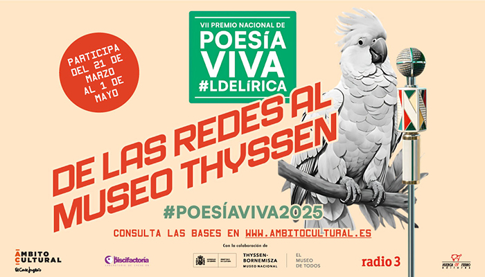 El ganador de la VII edición del Premio Nacional de Poesía Viva #LdeLírica será el protagonista de una gala poética que se celebrará en el mes de octubre en el Museo Thyssen-Bornemisza, y en la que estará acompañado por uno o varios poetas de reconocido prestigio internacional.