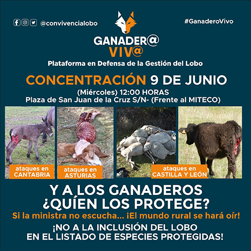 La movilización de la Plataforma en Defensa de la Gestión del Lobo “Convivencia Lobo – Ganader@ Viv@”, compuesta por más de 30 asociaciones del mundo rural, tiene como principal objetivo exponer la realidad de los ganaderos que sufren a diario los ataques de la especie, así como reivindicar el mantenimiento de su gestión como única herramienta efectiva para la supervivencia de su actividad económica y su propia seguridad.