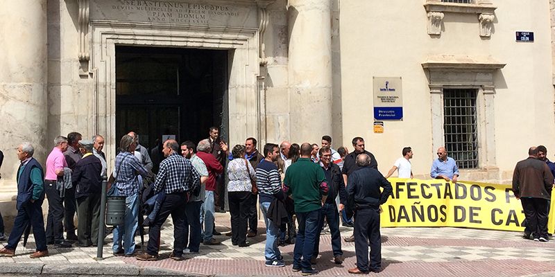 Minutos antes de comenzar la reunión varias decenas de agricultores se han concentrado espontáneamente en las puertas de la Dirección Provincial de Agricultura para mostrar su apoyo y para llamar la atención sobre la gravedad del problema que cada vez afecta a un mayor número de agricultores de la provincia de Cuenca. El presidente de ASAJA Cuenca, José María Fresneda, les ha explicado las medidas que iban a plantear en el transcurso de la reunión y ha recogido la preocupación que existe en el campo por la creciente población de ciervos, gamos, corzos jabalíes e incluso muflones que acaban con siembras, girasoles y atacan a árboles como olivar o almendro.