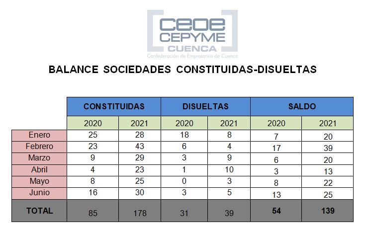 En este caso CEOE CEPYME Cuenca indica que se constituyen más empresas, aunque también se disuelven más, pero la creación de sociedades es mucho mayor que su desaparición.