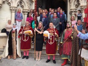 El Pendón de Alfonso VIII ya está en el Ayuntamiento de Cuenca, después de su traslado esta tarde desde la Catedral de manos de la concejal más joven de la Corporación municipal, Nerea Sancho Beamud, que lo ha recibido del Secretario Capitular bajo la promesa de devolverlo mañana, festividad de San Mateo.