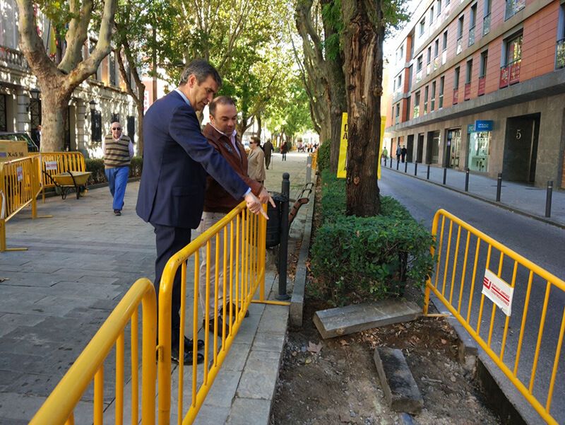 El Ayuntamiento está cerrando los pasos del paseo que no desembocan en pasos de cebra. Los trabajos han sido supervisados hoy por el alcalde, Antonio Román, y el vicealcalde, Jaime Carnicero