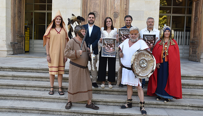 La diputada de Patrimoni, Ferias y Turismo, Mayte Megía; el alcalde de la localidad, Víctor Santiago; el arqueólogo, Antonio Madrigal; y el director del Museo Arqueológico, Miguel Contreras; acompañados de miembros de la Asociación Cultural Amigos Íberos Fuente de la Mota, han presentado en el Palacio Provincial las novedades de esta edición.