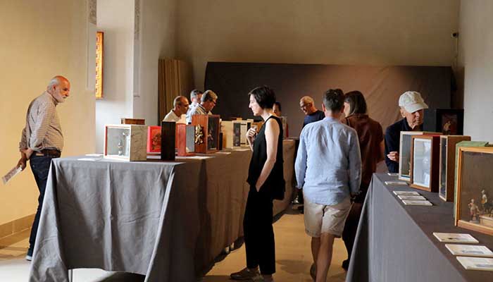 Desde que Pedro J. Pradillo comenzara este trabajo, algunos de estos ‘Besos y Caprichos’ han sido presentados en público en varias ocasiones y espacios. Sin embargo, es en el Salón Rico del Palacio Ducal de Cogolludo donde pueden admirarse en su conjunto, por primera vez, las ochenta inquietantes cajas que constituyen este imaginario colectivo. La exposición se puede ver hasta el próximo 21 de mayo, todos los días de la semana, previa cita en la Oficina de Turismo del Ayuntamiento de Cogolludo (949 85 72 14-676 34 64 85).