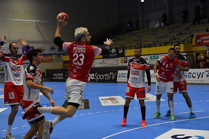 A partir del ecuador de la primera parte, los que vistieron de rojo mostraron otro juego distinto, llevando la batuta con una primera línea protagonizada por Fede Pizarro, con cuatro goles, y Thiago Alves. Por parte del cuadro castellanoleonés, Rodrigo Pérez Arce mantuvo a su equipo a flote hasta el final de los primeros treinta minutos, marchando a vestuarios con un gol por debajo (15-16).