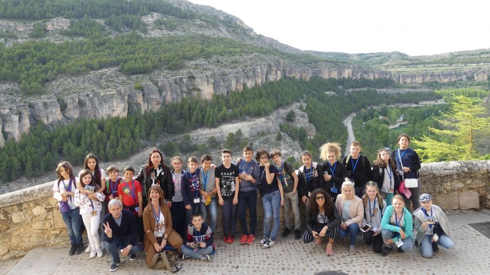 Así, el domingo día 19 los equipos europeos llegaban a Madrid donde eran recibidos por una representación del profesorado de Cuenca. Seguidamente, realizaban un pequeña ruta por la capital de España conociendo algunos lugares emblemáticos como el Parque de Europa, la Catedral de la Almudena, el Palacio Real, la Plaza Mayor, Puerta del Sol, o el Jardín Botánico. Tras la comida, la expedición tomaba rumbo hacia Cuenca donde llegaban a final de la tarde. En los aledaños del colegio conquense eran recibidos por el resto de profesores y las familias que durante la semana iban a acoger a los alumnos.