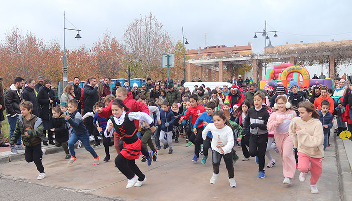 En cuanto a la prueba deportiva, finalmente fueron más de 200 las personas que se animaron a correr. Se trata de una cita con el atletismo popular, pero de carácter festivo, en el que no se establecen ganadores, y sí se hace un llamamiento a la participación festiva. Especialmente concurrida fue la prueba infantil, en la que participaban niños y niñas nacidos entre los años 2011 y 2023, que corrieron una distancia de 400 metros en un circuito trazado por las calles Julio Segarra, Antonio Cabezón, Isaac Albéniz y Manuel de Falla. Toda la chavalería recibió al llegar a meta una medalla de recuerdo, y además los niños y niñas pudieron disfrutar de un buen parque de hinchables instalado en la calle Julio Segarra Blanco, que estuvo muy concurrido.