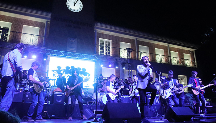 Una vez culminados estos «aperitivos» llegaba el momento central del festival, con la gran actuación grupal de músicos y cantantes aficionados de la localidad y el entorno. Este año, con cinco temas en el repertorio, cada uno de ellos liderado por un «grupo base» de la localidad, de músicos más experimentados. En un primer pase se interpretaron los temas «Agotados de esperar el fin», de Ilegales; «Rocks», de Primal Scream; «Como yo te amo» (de Manuel Alejandro para Rocío Jurado, en versión de “Niños Mutantes”); y «En blanco y negro», de Barricada. El tema «Are yo gonna be my girl», de JET, quedó para el segundo pase, ya que los voluntarios lo interpretaron acompañados de «La Banda de Late Motiv».