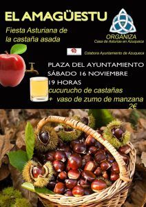 La Casa de Asturias en Azuqueca celebrará este sábado 16 de noviembre desde las 19 horas en la plaza del Ayuntamiento la fiesta de la castaña, el “Amagüestu”.