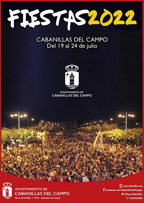 Casi 70 actos conforman el Programa de las Fiestas de Cabanillas 2022Tras dos años sin poder celebrarlas, este mes de julio regresan a Cabanillas del Campo sus tradicionales Fiestas de Verano, con un amplísimo programa para el disfrute de todos los vecinos y vecinas. Un total de 68 actividades conforman este año las Fiestas, que se celebrarán de martes 19 a domingo 24 de julio. El librito-programa ya puede descargarse en PDF desde la web municipal, y además será buzoneado en estos días por todos los hogares del municipio.
