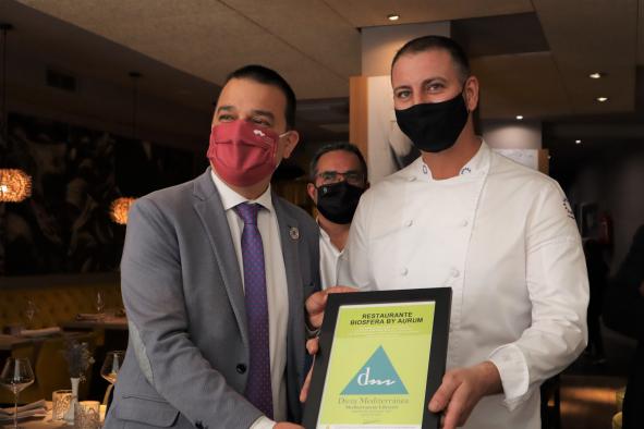 El consejero de Agricultura, Agua y Desarrollo Rural y presidente de la Fundación Dieta Mediterránea, Francisco Martínez Arroyo, se ha desplazado hoy hasta el restaurante ‘Biosfera by Aurum’, de Guadalajara, para hacerle entrega del diploma que lo reconoce como promotor de los valores de la dieta más saludable, sostenible y patrimonio Inmaterial de la Humanidad por la UNESCO, la dieta mediterránea.
