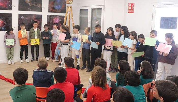 Decenas de niños y niñas de 3º de Primaria, estudiantes en los colegios de Cabanillas “La Senda” y “San Blas”, acudieron en la mañana del miércoles 20 de marzo a celebrar en la Biblioteca Municipal León Gil el Día Internacional de la Narración Oral de este año 2024.