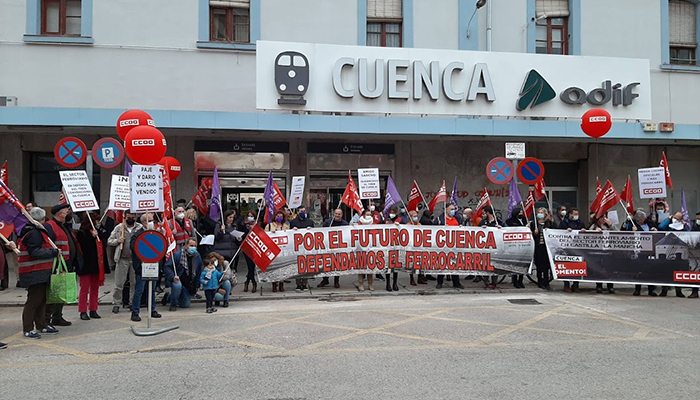 A las 18.15 horas en la Estación del ferrocarril de Cuenca (Paseo del Ferrocarril), CCOO se han concentrado en defensa de la línea de tren convencional, a la que hacemos un llamamiento al conjunto de la ciudadanía a la participación.