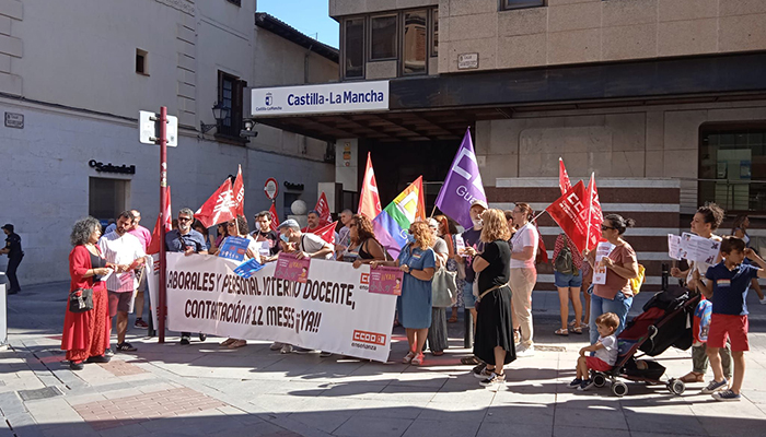 CCOO-Enseñanza se moviliza en toda la región para exigir el fin de la contratación precaria del personal laboral de la consejería de EducaciónSindicalistas de CCOO-Enseñanza y trabajadores afectados por esta situación CLM se han concentrado esta mañana ante las cinco delegaciones provinciales de la Consejería para denunciar la precariedad que sufre el personal laboral, mayoritariamente contratado a tiempo parcial y solo durante diez meses al año.