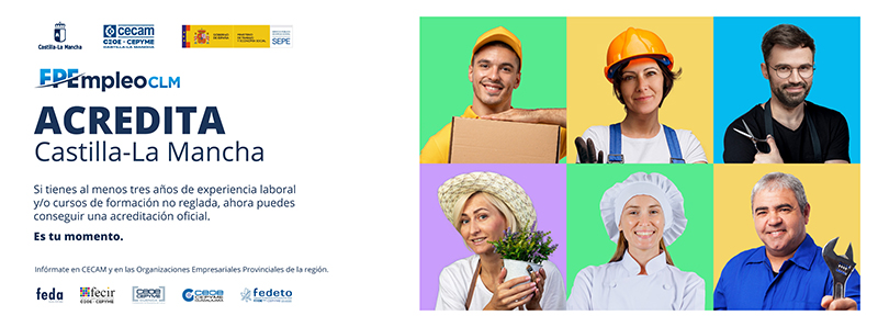 Acredita es un proyecto de reconocimiento de las competencias profesionales adquiridas por la experiencia laboral cuya información se puede consultar a través del enlace http//pop.jccm.es.