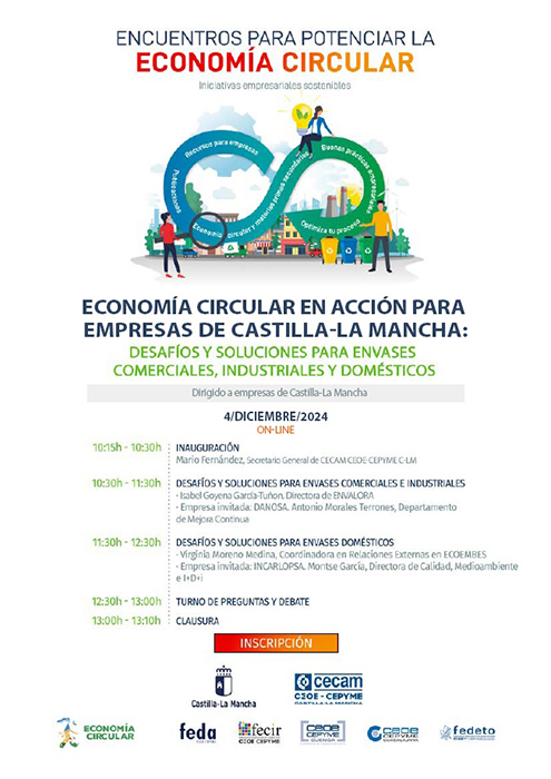 La organización empresarial conquense indica que esta charla se celebrará el próximo día 4 a partir de las 10:15 de la mañana en formato online pudiéndose inscribir de manera gratuita en el enlace https://cecam.es/eventos/encuentros-para-potenciar-la-economia-circular-2024/.