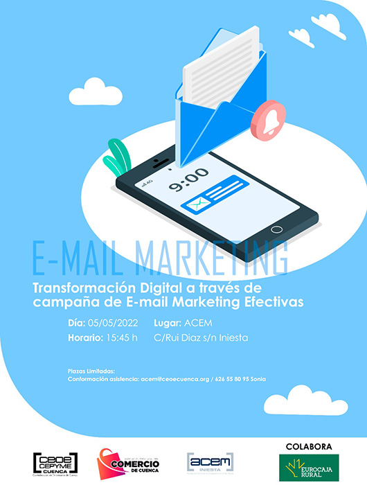 La siguiente jornada prevista dentro de la programación será impartida por Eulogio Escribano el jueves 5 de mayo en Iniesta, también a las 15:45 horas, bajo el título ‘Transformación digital a través de la campaña de Email Marketing Efectivas’.