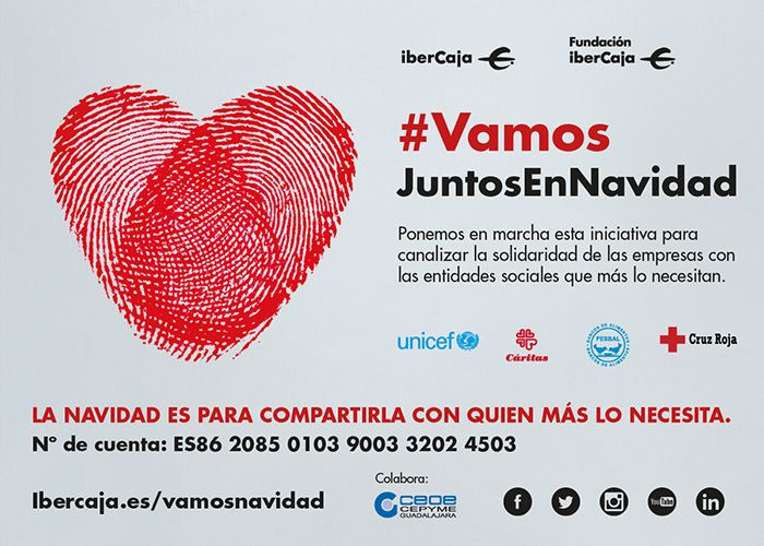CEOE CEPYME Guadalajara apoya la campaña solidaria “Vamos es ir siempre juntos, también en Navidad” para reforzar la divulgación de la misma y lograr un mayor alcance entre el tejido empresarial en la provincia. Ibercaja y su fundación pusieron en marcha esta iniciativa con el objetivo de ayudar en estas fechas a las personas y familias más vulnerables en España, en el marco de la pandemia provocada por el Covid19. Esta nueva acción, a nivel nacional, pretende canalizar la solidaridad de las empresas y dirigirla a las entidades sociales que ayudan a quienes más lo necesitan. La incidencia de la pandemia durante este año ha tenido como consecuencia el aumento del número de familias en situación de vulnerabilidad y una mayor necesidad de apoyar a los colectivos que más se han visto perjudicados por esta crisis.