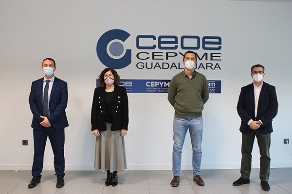 En la firma, que ha tenido lugar en el centro de formación de la Patronal alcarreña, han estado presentes María Soledad García, presidenta de la Confederación de empresarios de Guadalajara y José Luis Gómez-Cano, gerente de la Zona Centro de Servicios Industriales de ILUNION Facility Services.