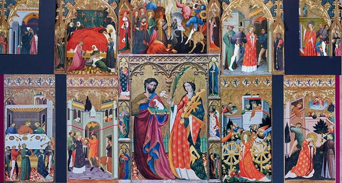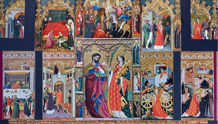 El arca con la reliquia de  Santa Librada también va a quedar en la Sacristía de las Cabezas, así como otros cuadros y esculturas, que quedarán ubicados en diferentes lugares de la catedral, como los dos arcángeles que abrían la exposición. Van a permanecer en la misma ubicación, pero con un montaje más ligero.  Y lo mismo sucederá con el retablo de San Juan Bautista y de Santa Catalina, que se queda completo, pero en otro lugar.