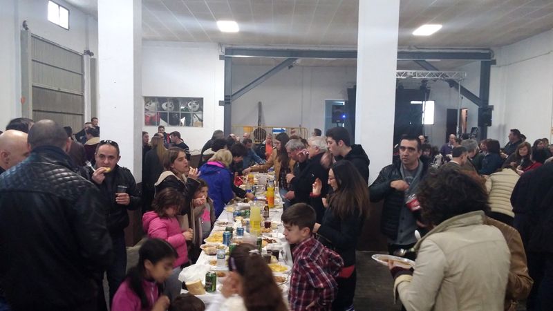 Hablamos con Vicente Reyes en el momento en el que la gente, reunida en el antiguo Silo, está dando cuenta del segundo plato: hemos matado un cerdo que hemos cocinado de varias formas, fundamentalmente frito con ajos aunque los lomos iban aparte, y hemos hecho unas judías. Unos 25 kilos de judías y no va a sobrar nada. Y si sobra, mañana terminamos con todo. ¿Por cuánto?, pues por unos 1.000 euros y todo el mundo contento, no como antes que el cordero se lo comían unos pocos y a nosotros nos daban unos cacahuetes y unas aceitunas y adiós.