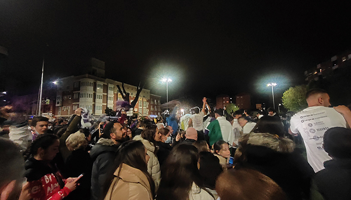 Cientos de personas se han congregado esta noche en la Plaza de Bejanque de Guadalajara para celebrar la victoria por 0-3 del Deportivo Guadalajara ante el Tarancón y que ha supuesto el primer campeonato en los 75 años de historia del equipo alcarreño y el ascenso directo a Segunda RFEF.