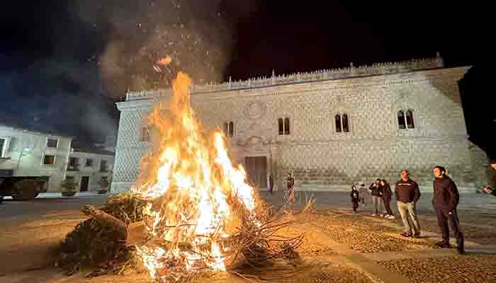 Los organizadores prepararon la gran pira de leña, entre el mayo, de 22 metros, que preside la plaza, y el Palacio Ducal, cuando cayó la noche. Compuesta toda ella por restos de la poda municipal, se le prendía fuego en una fresca noche de primavera en la que el calor de la hoguera invitaba a arrimarse. Igualmente se aprovechaba para hacer una barbacoa, en la que no faltaron los espárragos de la tierra, chorizo y morcilla, y las ricas carnes de Cogolludo.